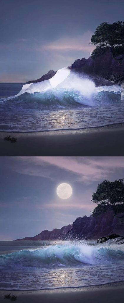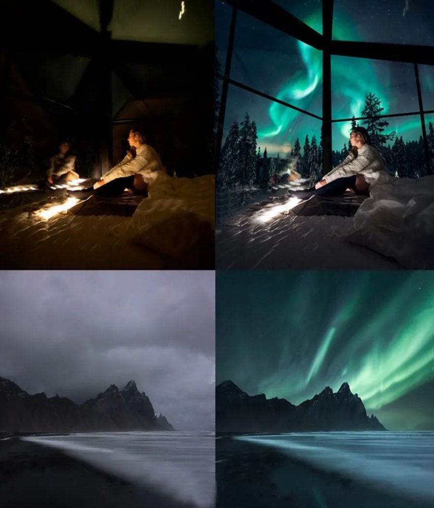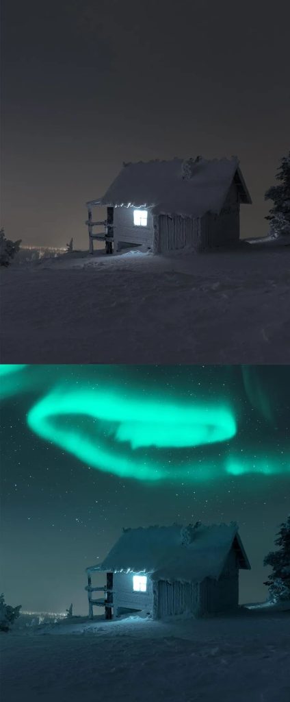 PS一键刷套装,可快速添加元素,例如天空,北极光,星星,月亮,闪电,粒子,雾,灰尘,飞溅,鸟类,树木,云层,光线等