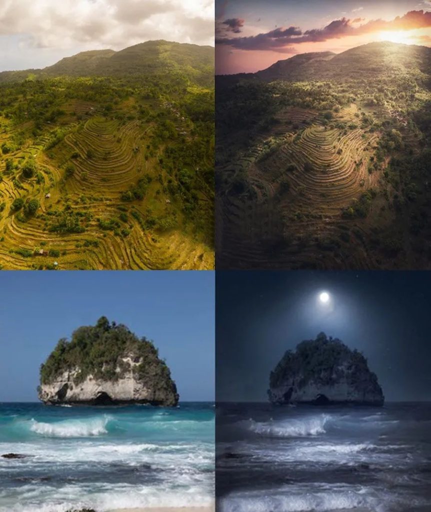 PS一键刷套装,可快速添加元素,例如天空,北极光,星星,月亮,闪电,粒子,雾,灰尘,飞溅,鸟类,树木,云层,光线等。您可以在几秒钟内获得惊人的效果。