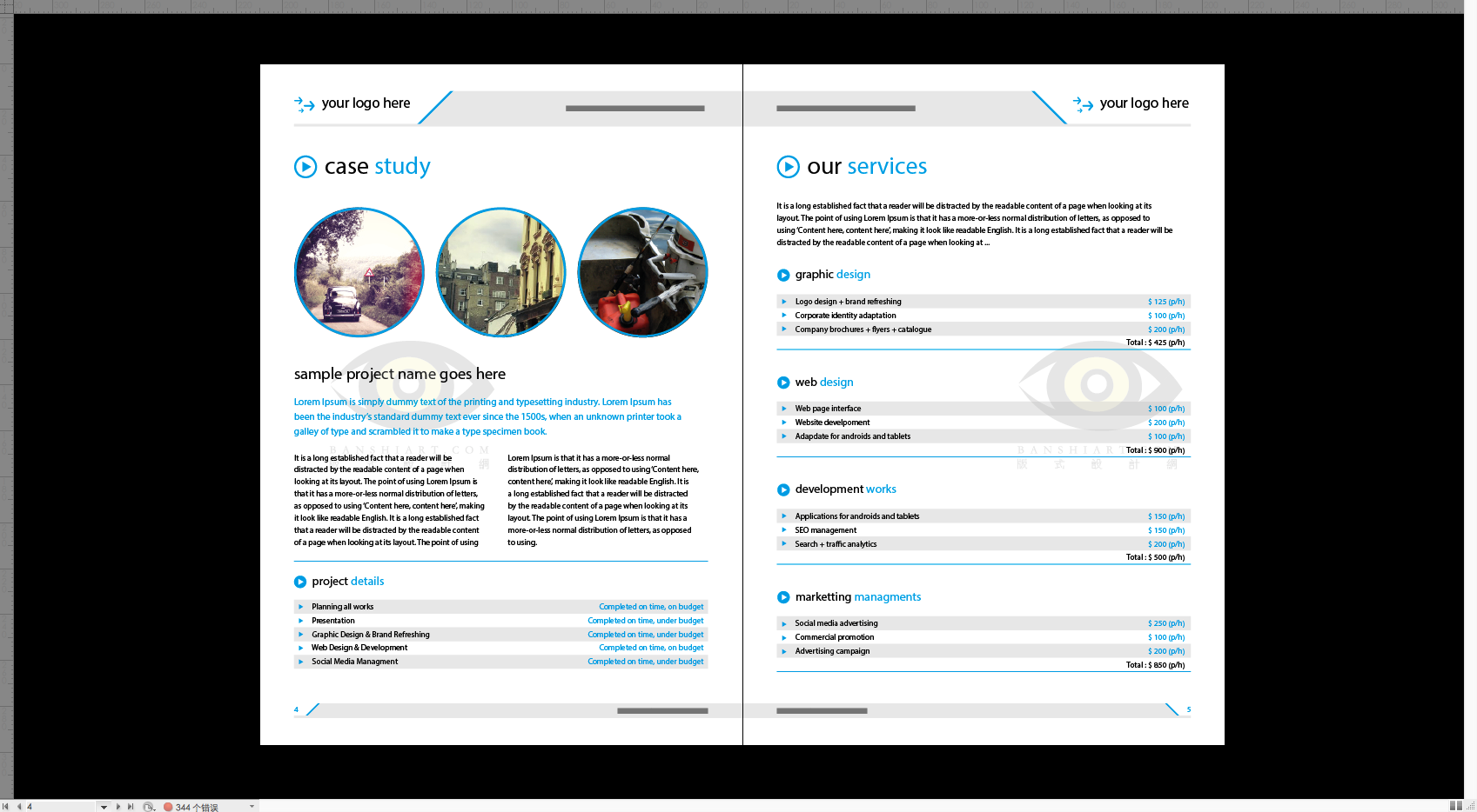 公司企业产品宣传单画册id封面数据类内页版式设计素材模板 公司企业产品宣传单画册id封面数据类内页版式设计素材模板575posal_A4 文件大小:27MB 文件格式:InDesign 资源下载此资源下载价格为2积立即购买(VIP免费)立即升级拍前请注意:虚拟商品不支持退款,所有资源只能作为设计参考使用,不得商用,一经发现立刻封号,部分文件是展示预览不带实际图片请知晓!版式君分享设计的目的并不是让你抄袭!多学设计大师的思维方式才是本站的核心目的!客服QQ:2579 942 067