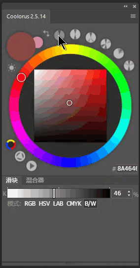 Coolorus 这款专业的配色插件,能够将色彩快速应用于图形/图像或文字层,拥有众多配色方式